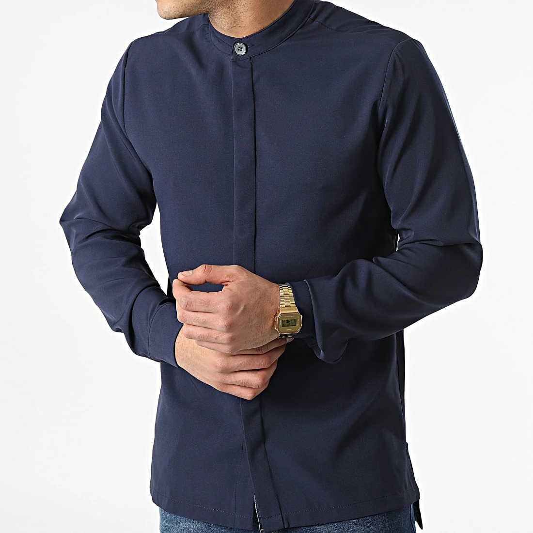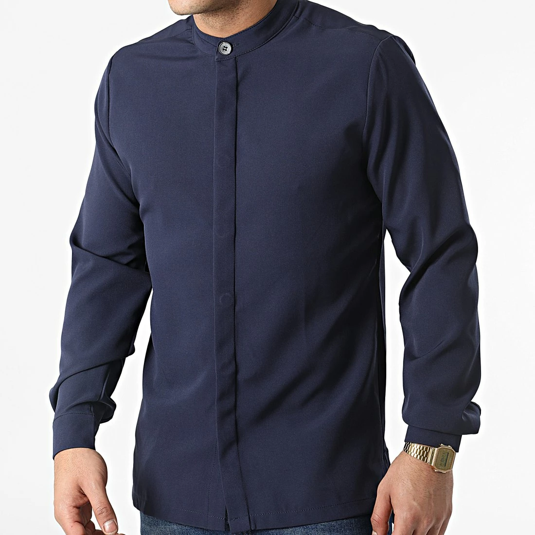 Offres 👍 Chemise Manches Longues Col Mao 22005 Bleu Marine de Uniplay 🔥