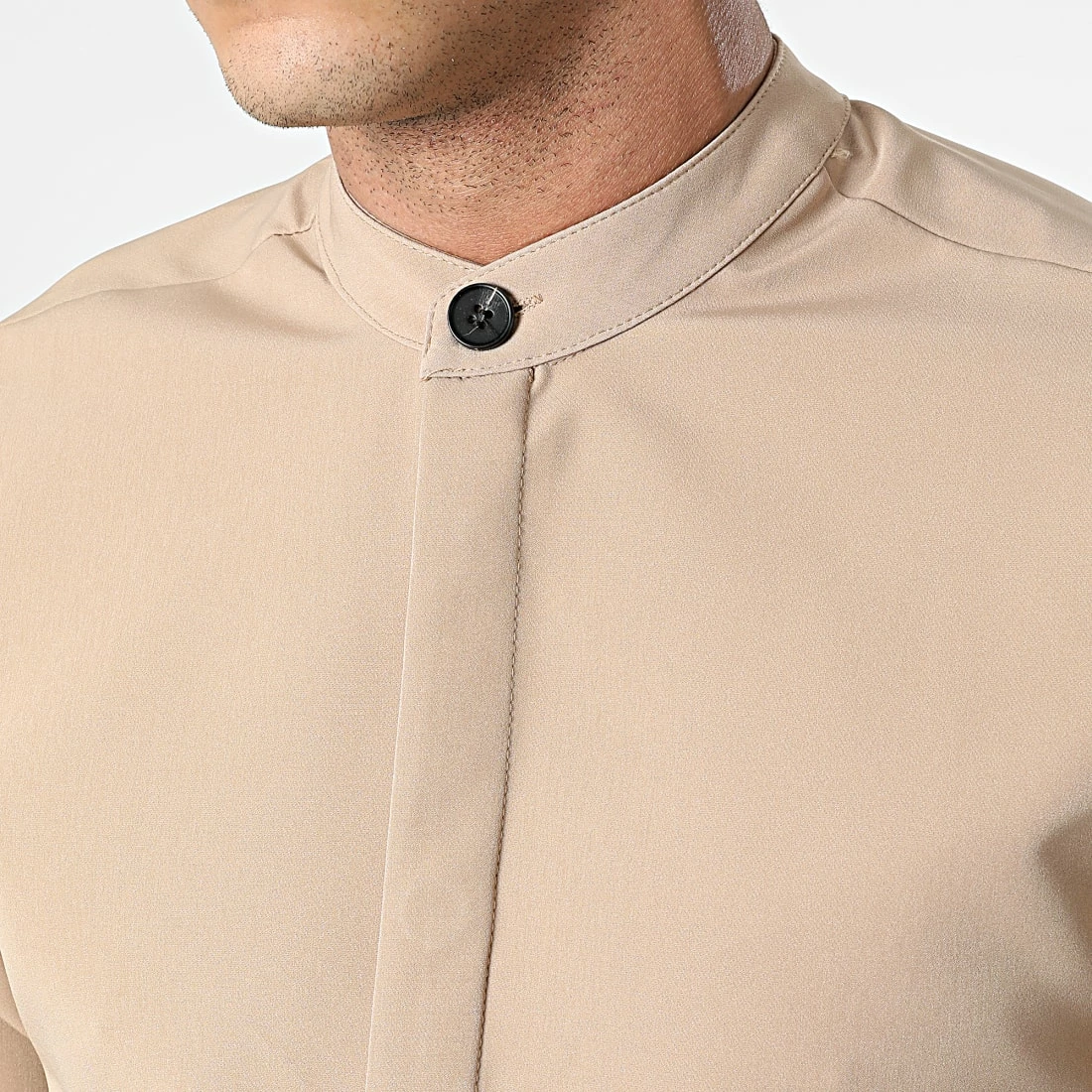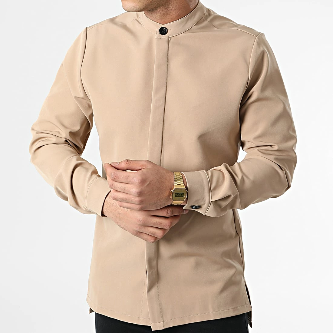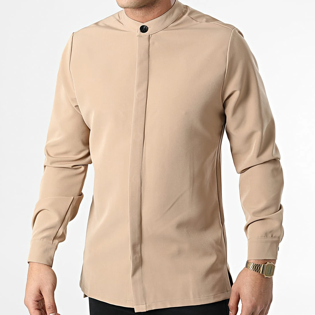 Grosses soldes ❤️ Chemise Manches Longues Col Mao 22005 Camel de Uniplay 👏