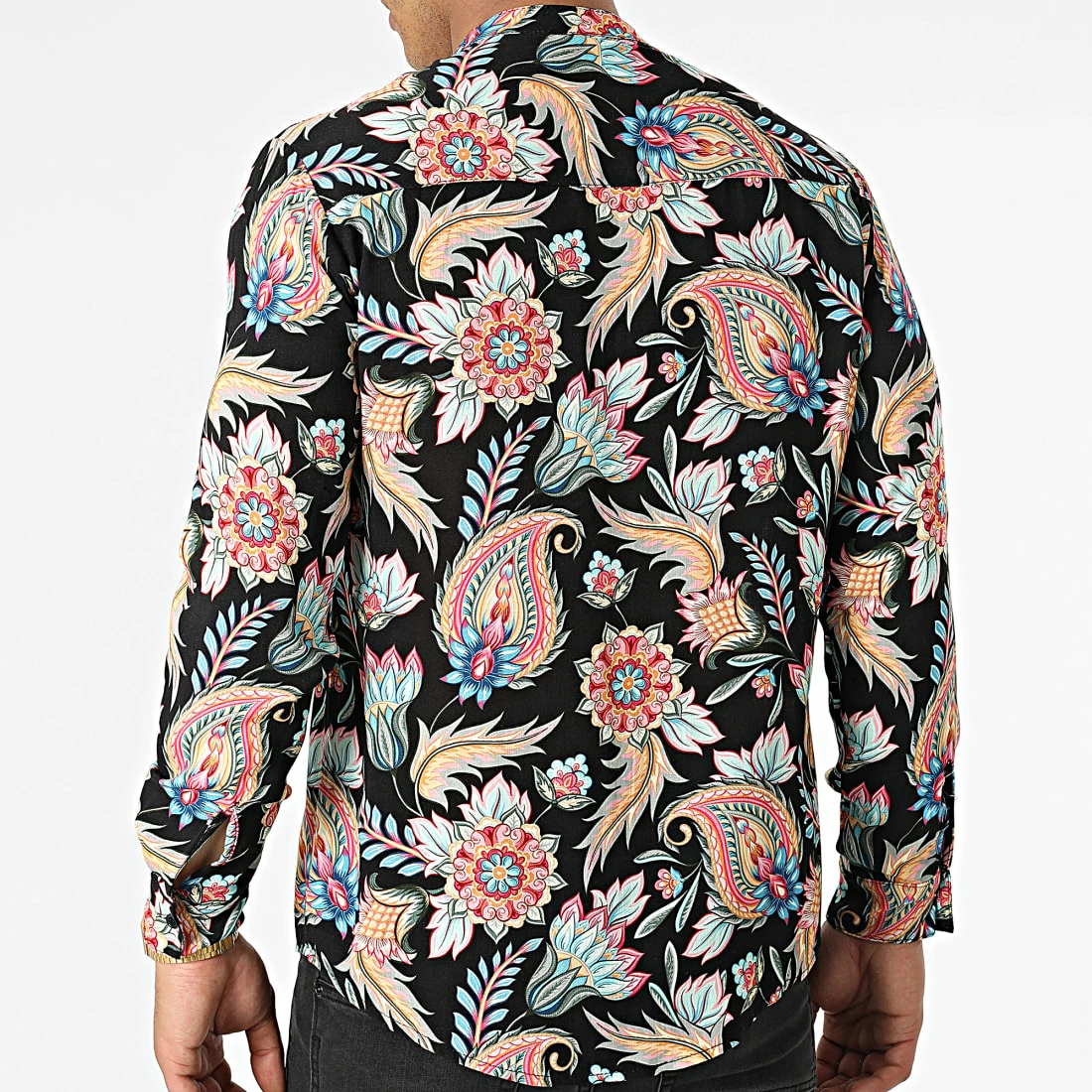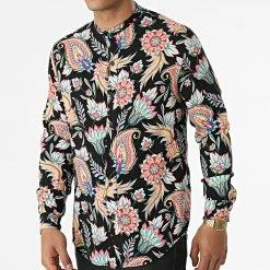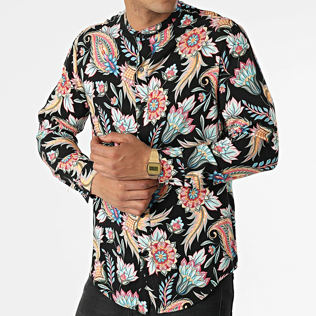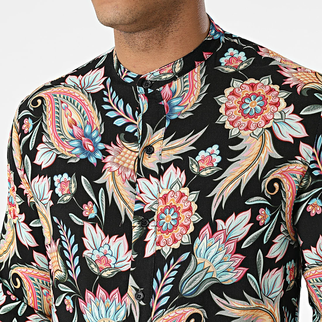 Grosses soldes 😀 Chemise Manches Longues Col Mao Floral UY837 Noir de Uniplay 🧨