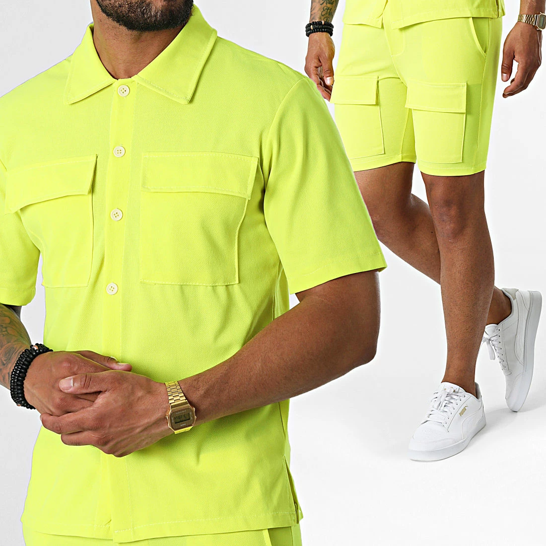 Sortie ⭐ Ensemble Chemise Manches Courtes Et Short Jogging 22059 Jaune Fluo de Uniplay 🧨