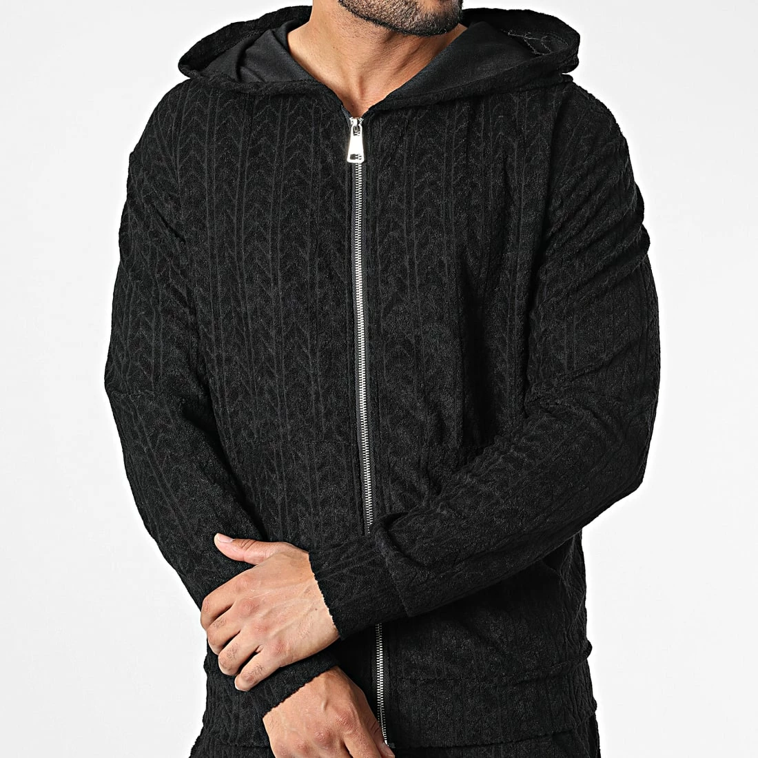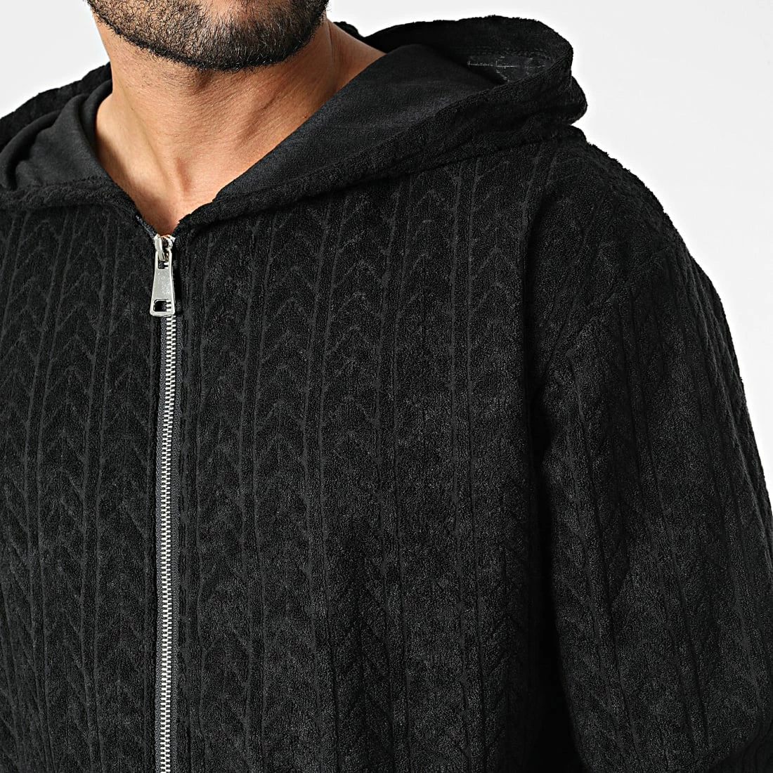 Nouveau ⌛ Ensemble Sweat Zippé Capuche Et Pantalon Jogging SH-42 Noir de Uniplay 😉