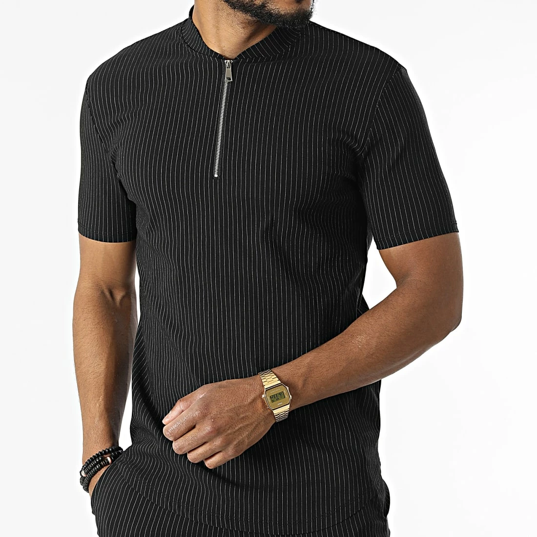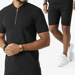 Tout neuf 💯 Ensemble Tee 👚 Shirt Col Zippé Et Short A Rayures UY847 Noir de Uniplay 🛒