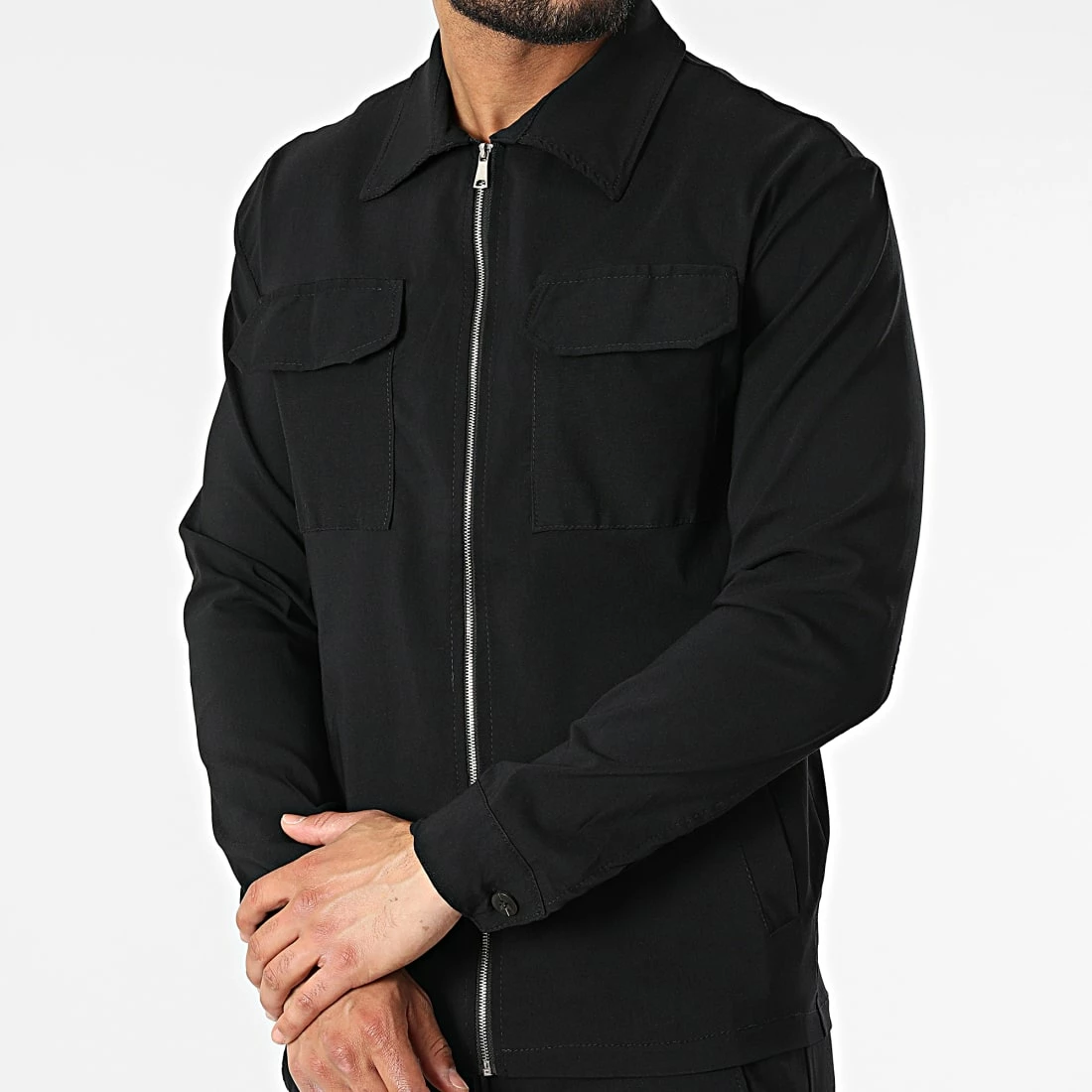 • Ensemble veste zippée et pantalon jogging tendance en tissu stretch et uni