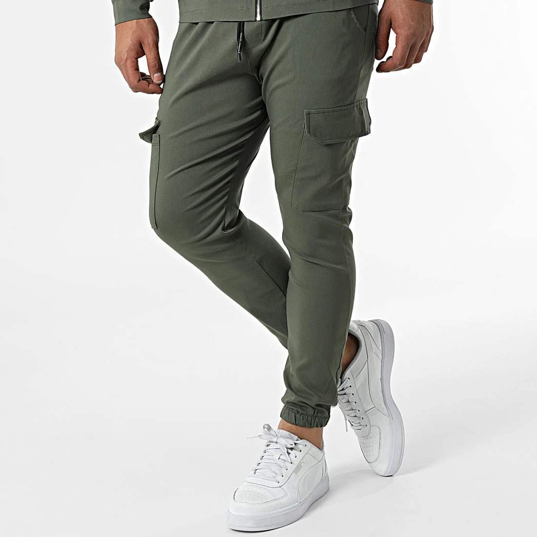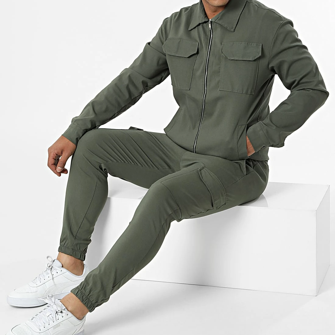 • Ensemble veste zippée et pantalon jogging tendance en tissu stretch et uni