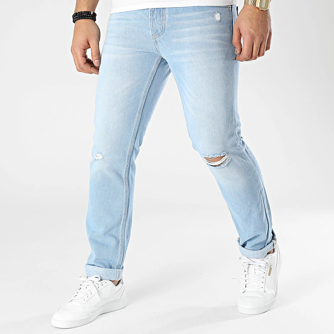 • Jean regular tendance finition délavée et usée avec trous apparents