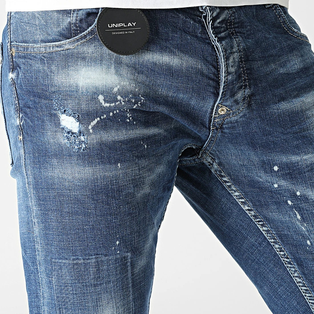 • Finition usée, tachée, délavée et avec rapiéçages