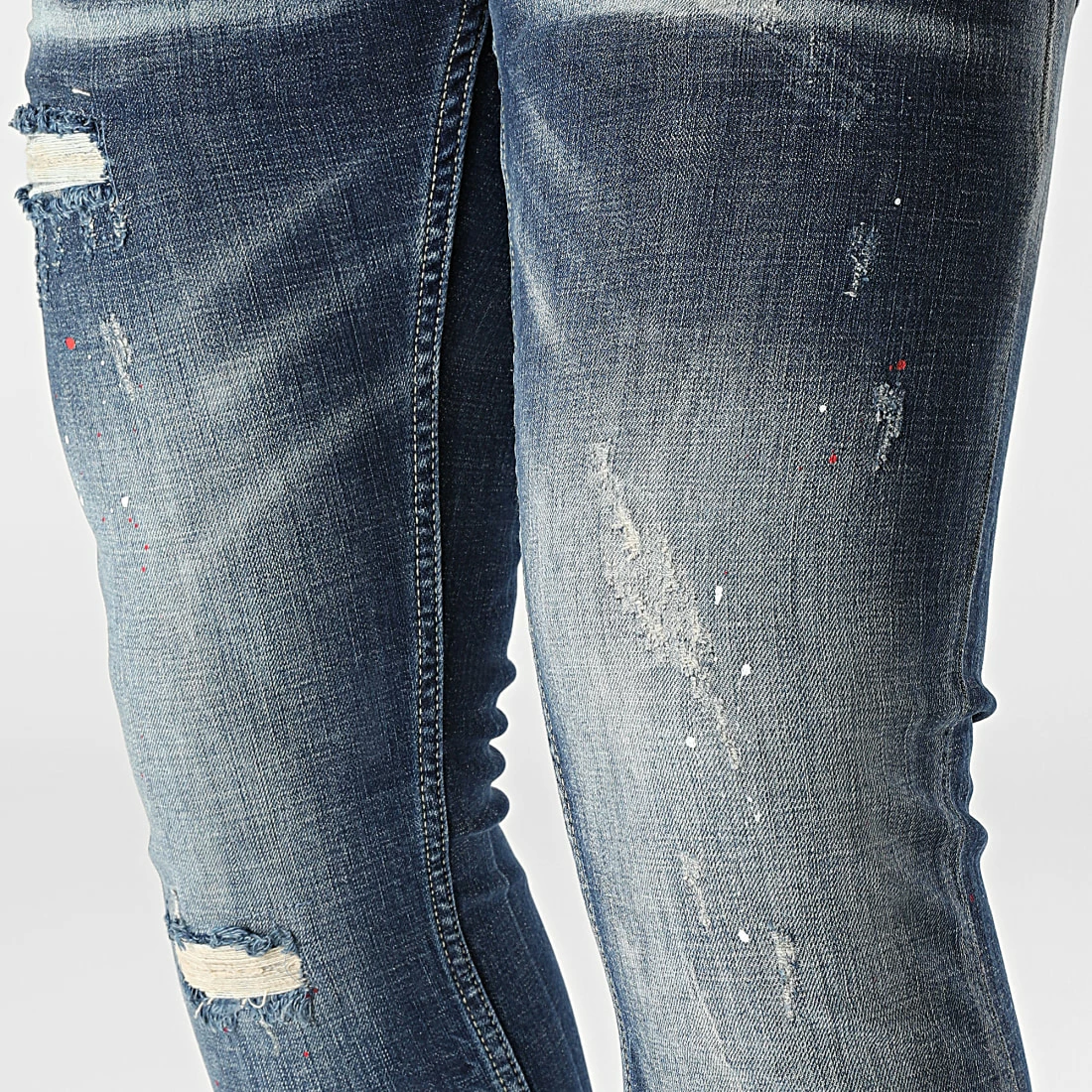 • Jean skinny tendance finition tachée, usée et délavée avec rapiéçages