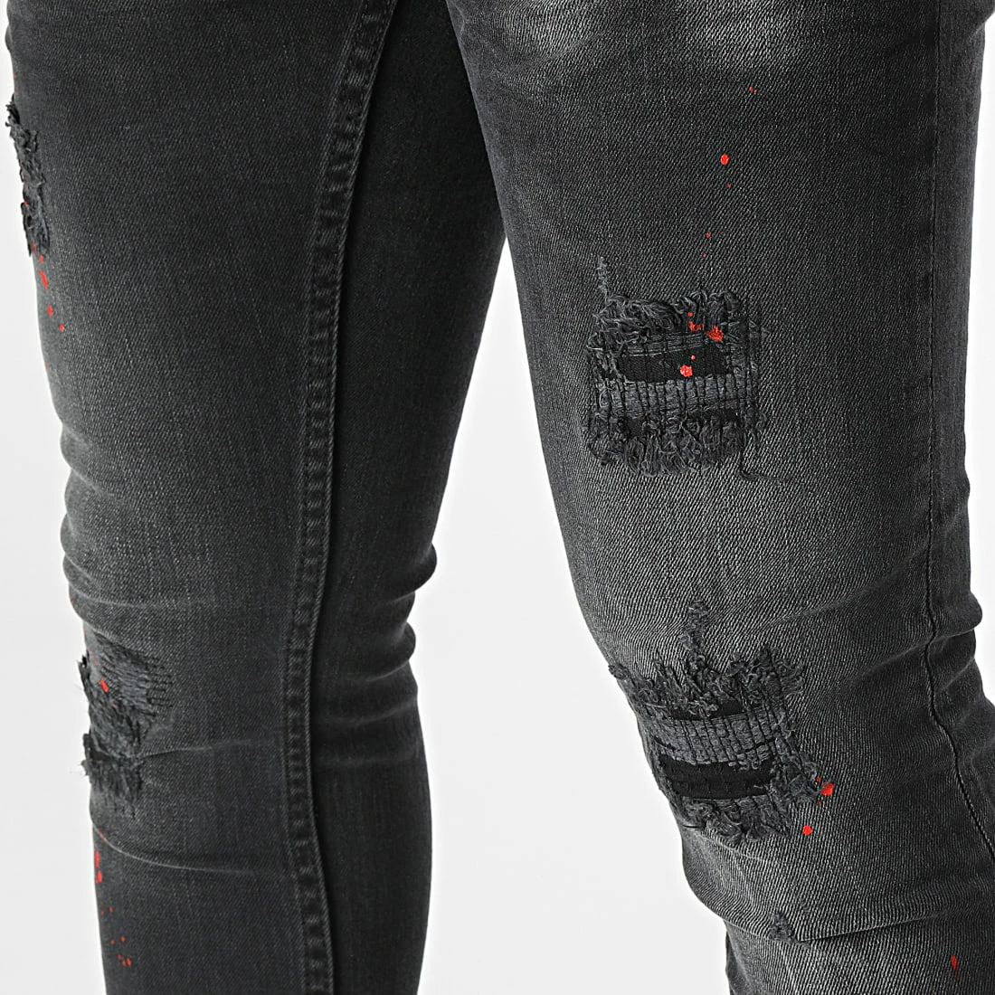 • Finition usée, tachée, délavée et avec rapiéçages