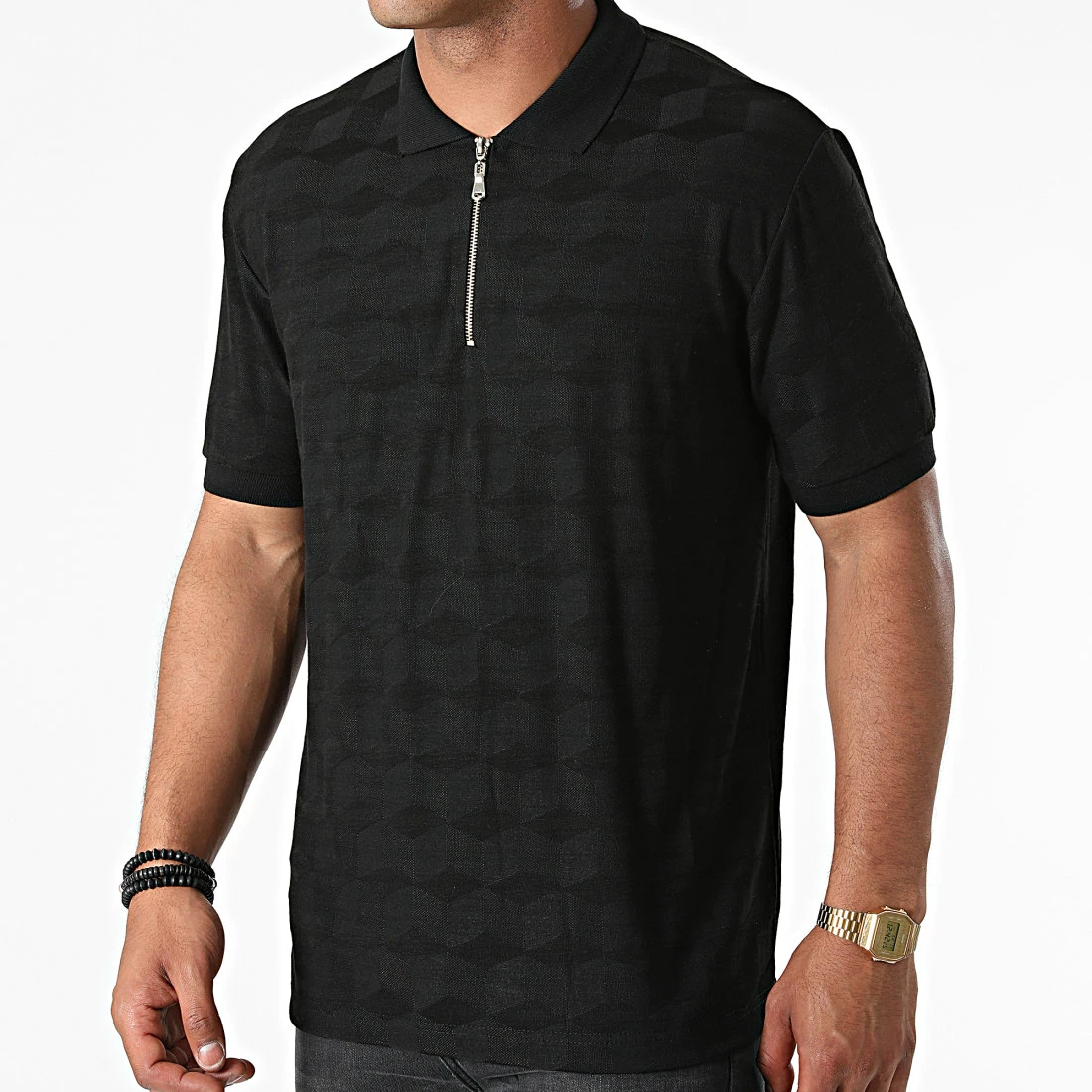 • Polo à manches courtes avec motif brodé ton sur ton all over