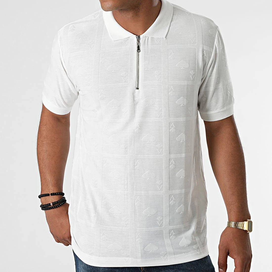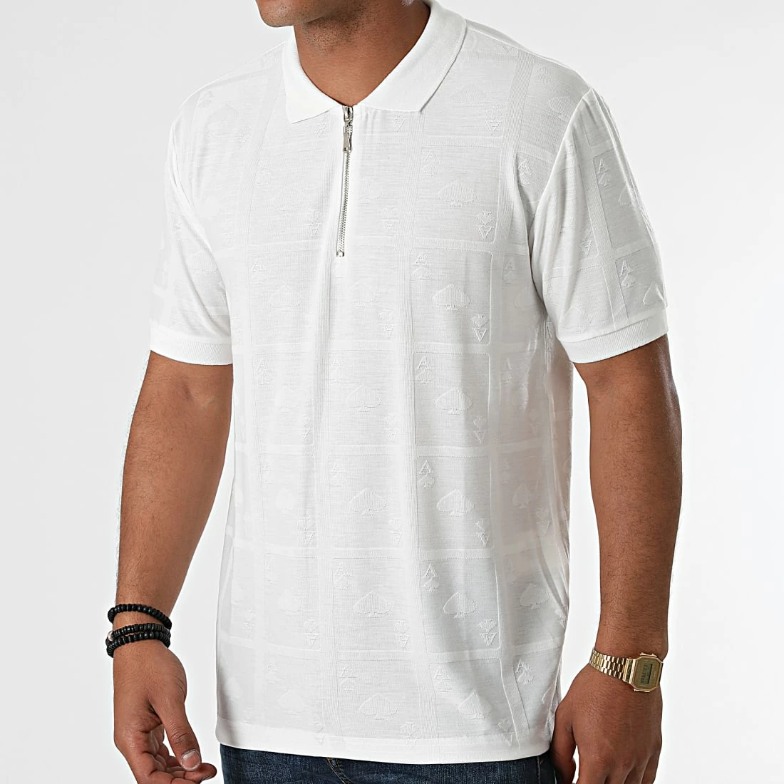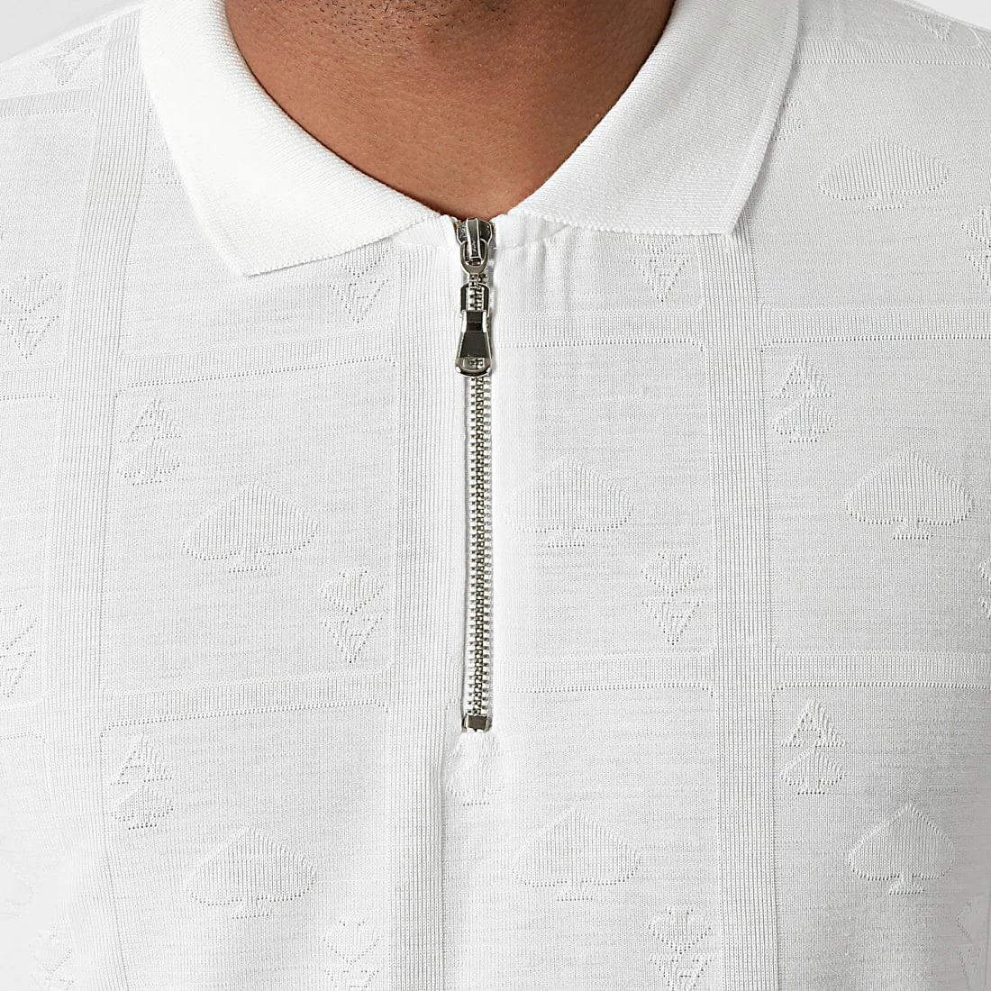 • Polo à manches courtes avec motif brodé ton sur ton all over