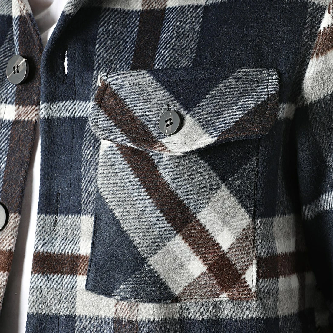 • Deux poches poitrine à bouton classique