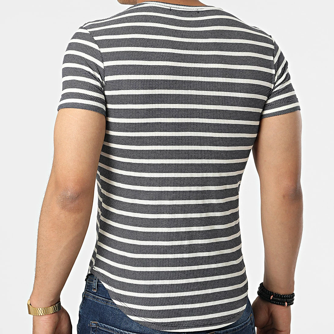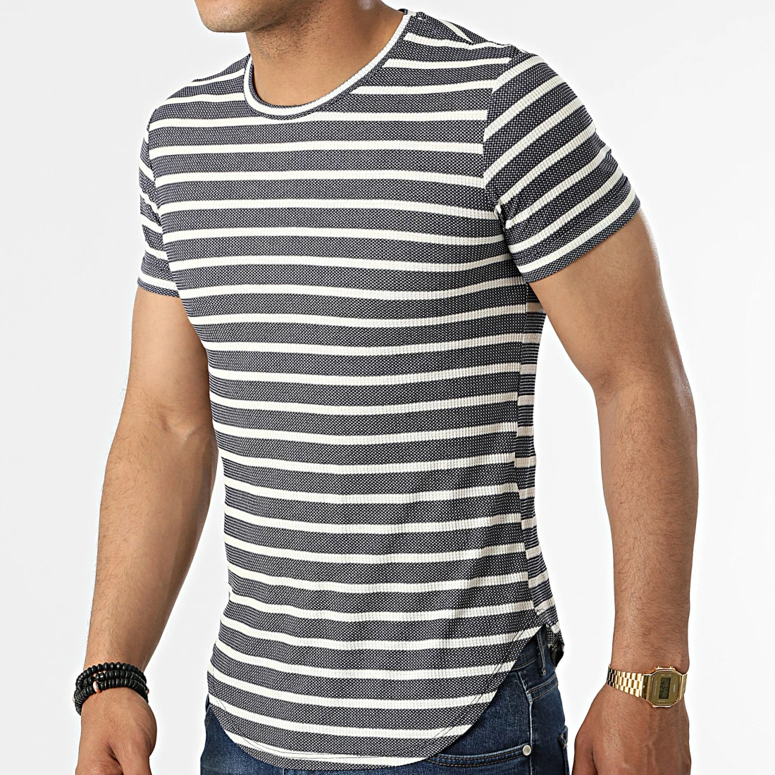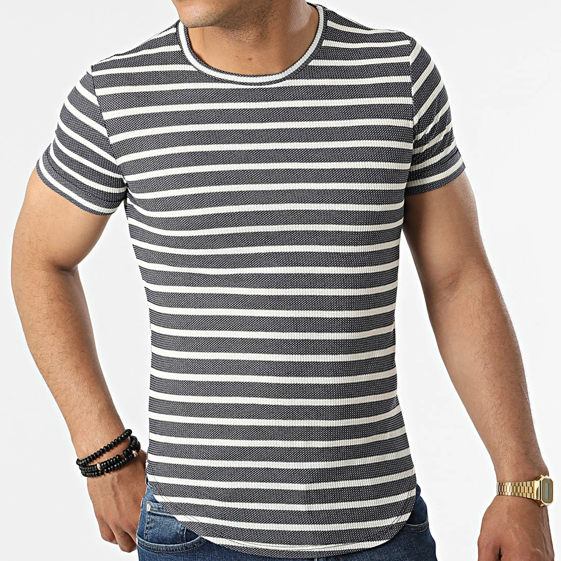 Budget 🎉 Tee 👕 Shirt A Rayures UY832 Bleu Marine de Uniplay 🎉