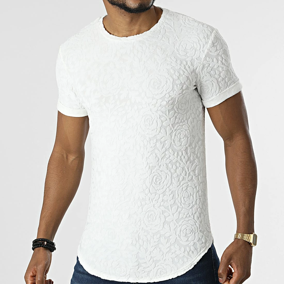 • Tee shirt en tissu ultra doux à motif floral ton sur ton