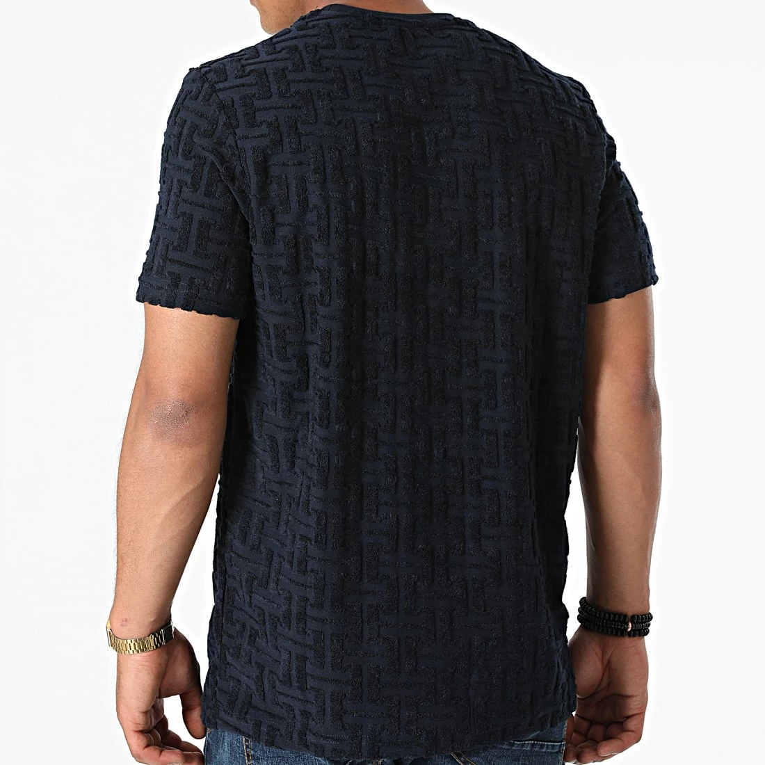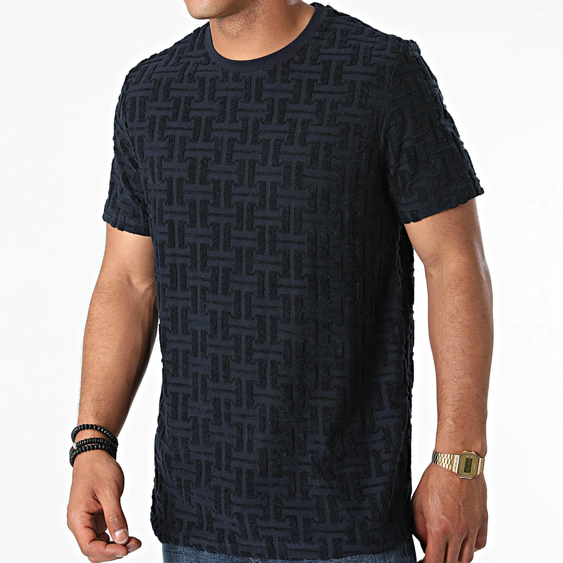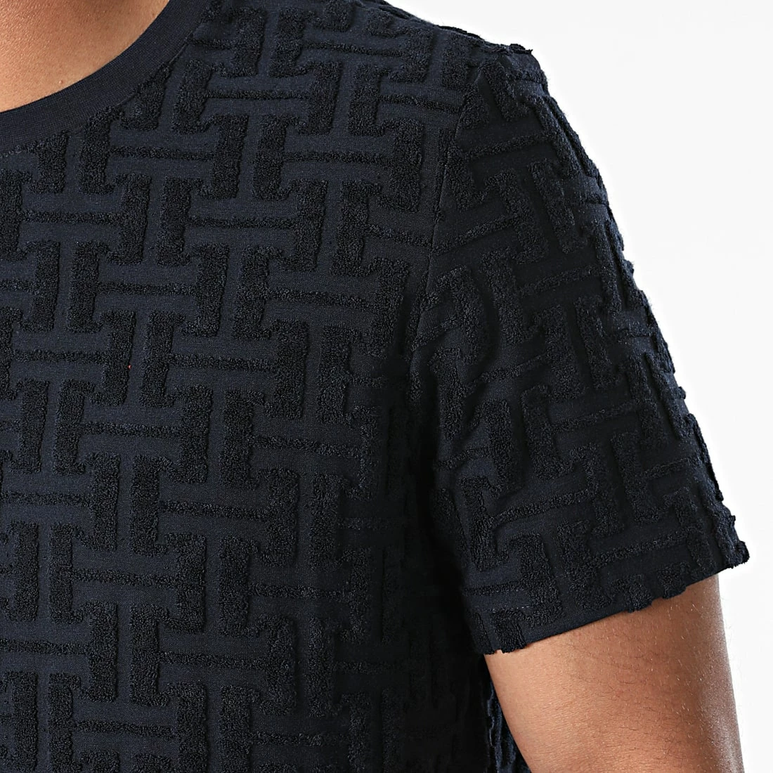 • Tee shirt avec motif en tissu éponge brodé ton sur ton all over