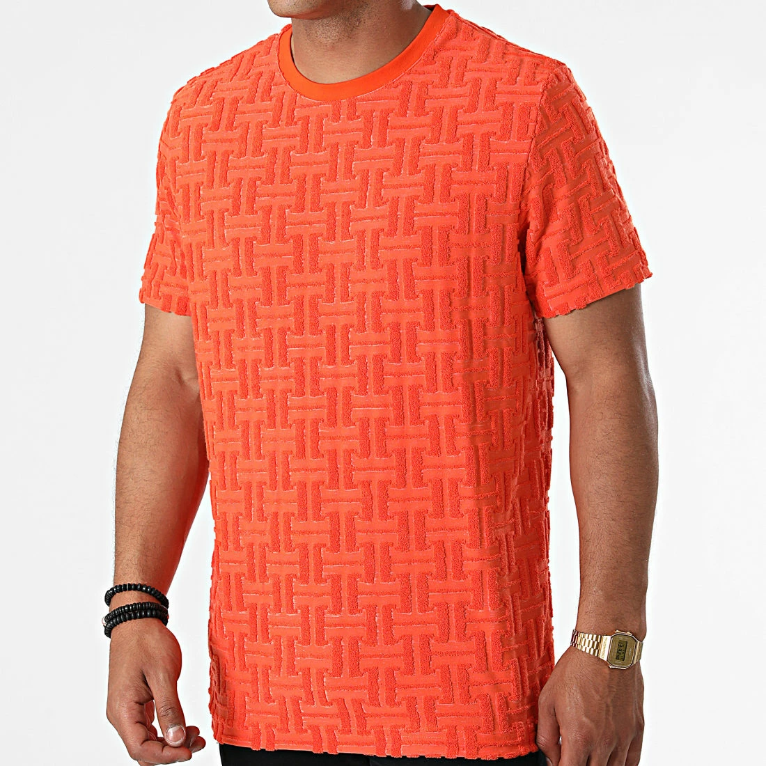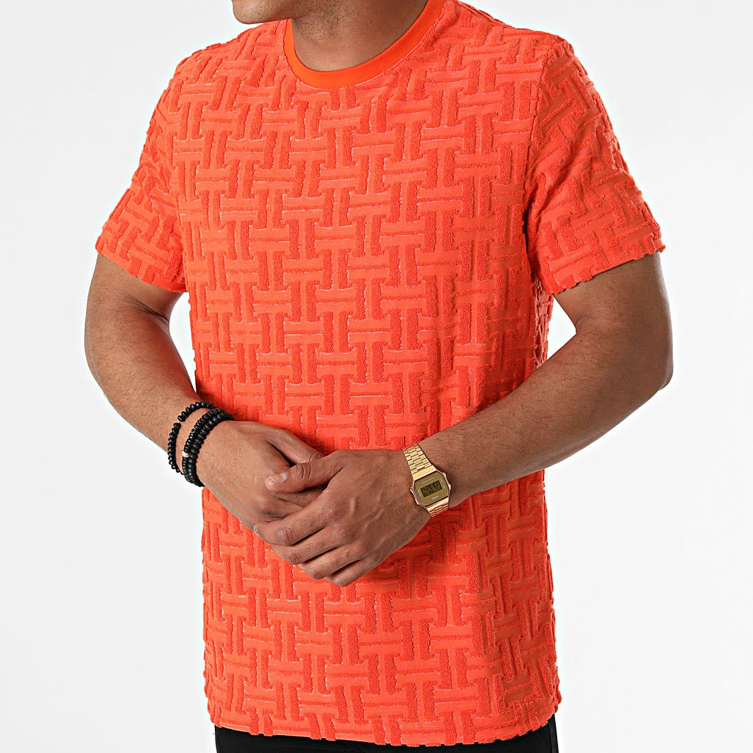 • Tee shirt avec motif en tissu éponge brodé ton sur ton all over