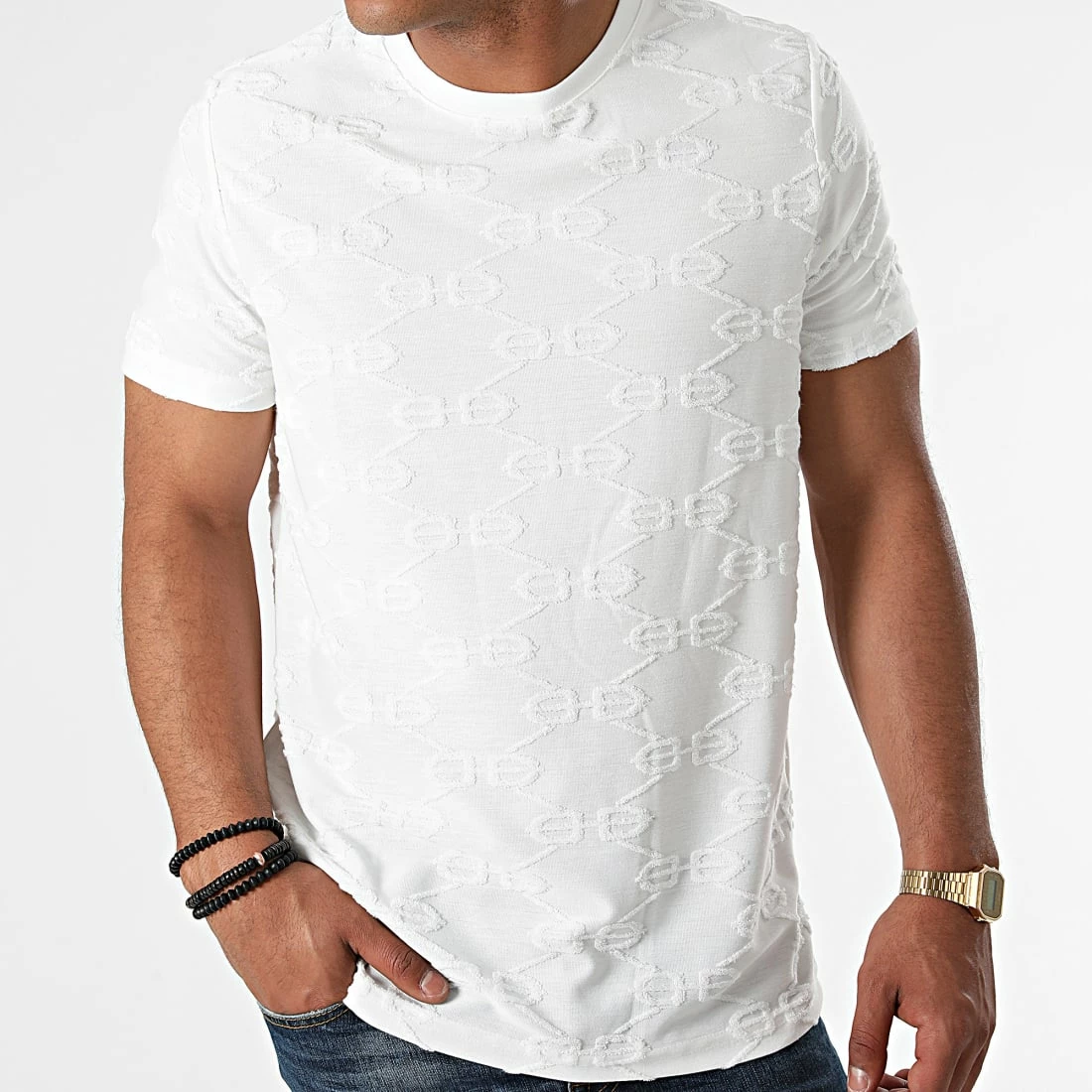 • Tee shirt avec motif en tissu éponge brodé ton sur ton all over