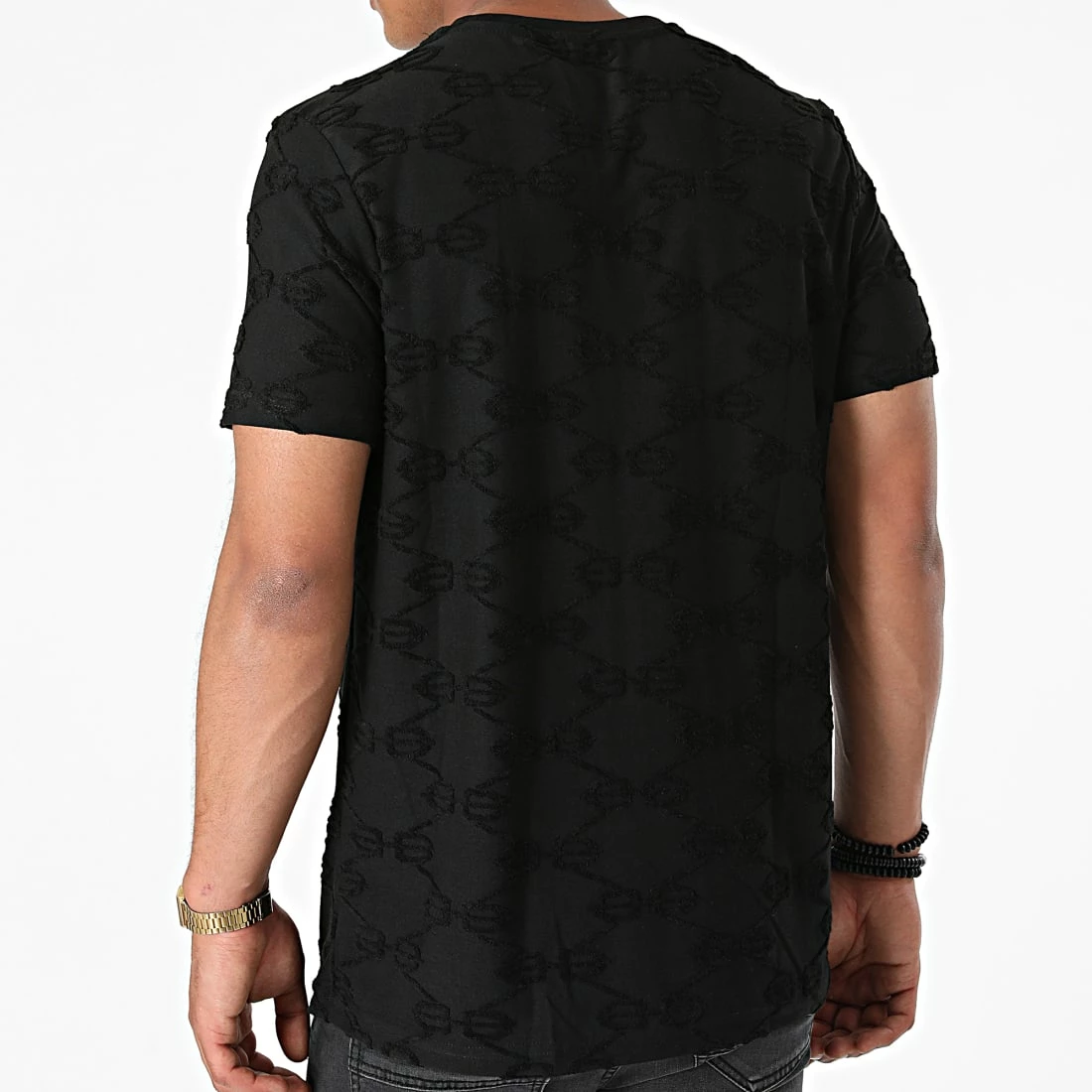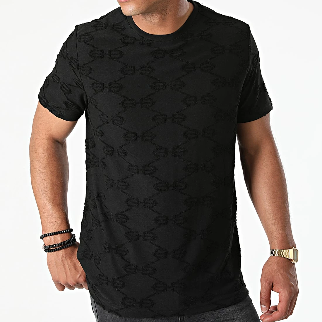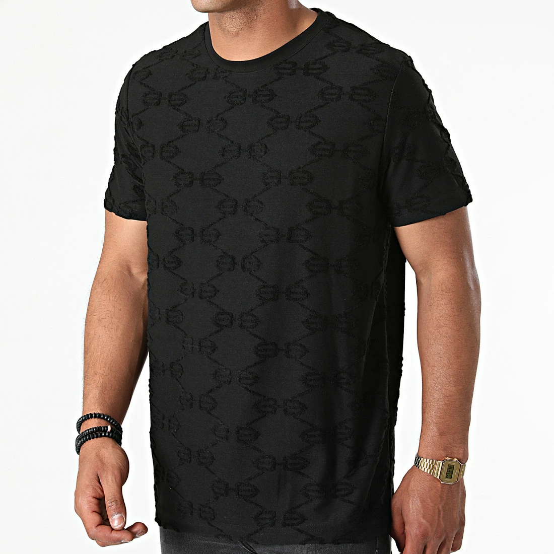 • Tee shirt avec motif en tissu éponge brodé ton sur ton all over