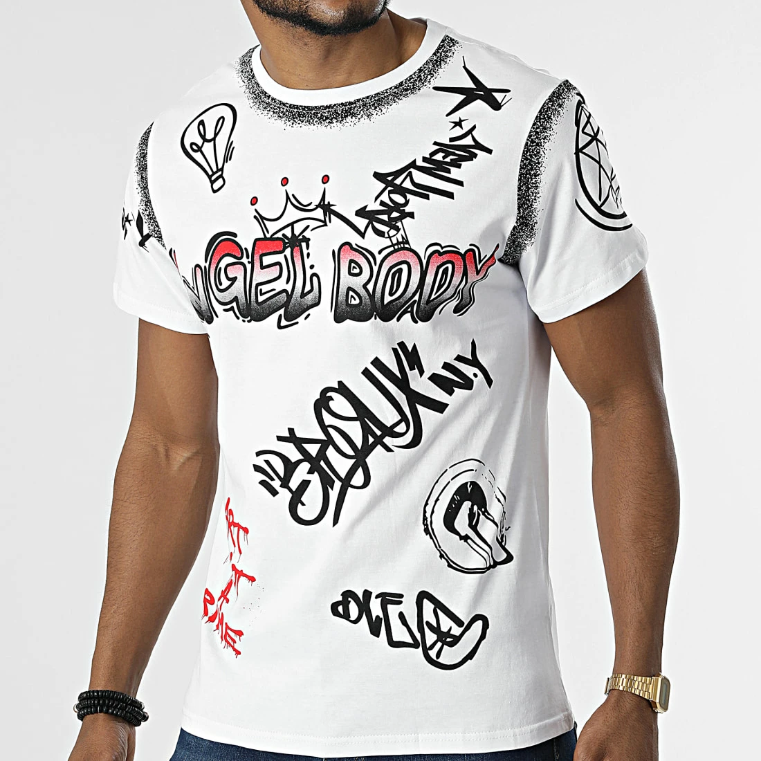 • Tee shirt imprimé visuel sur l’avant et les manches